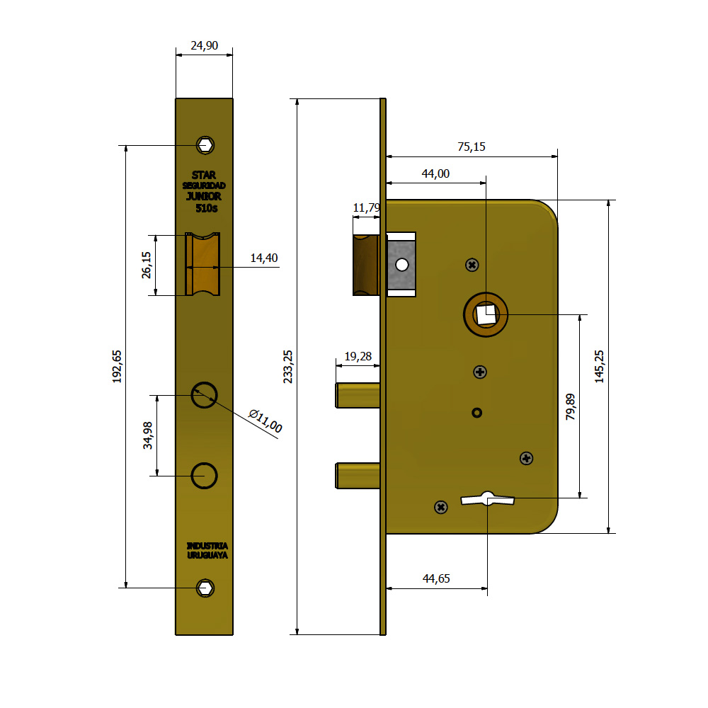 Cerradura STAR 510S Pasador Perno Derecho / Izquierdo – Hierro Bicromatado